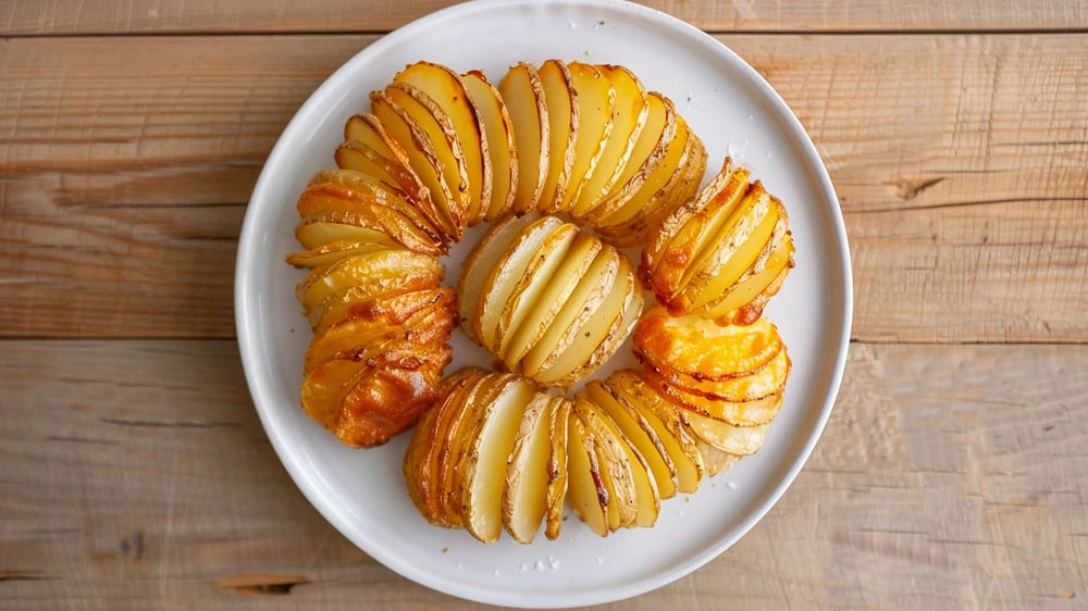 Crispy, accordion-style sliced potatoes, baked to perfection with herbs and spices. These potatoes are visually striking and delicious, making a great side dish.